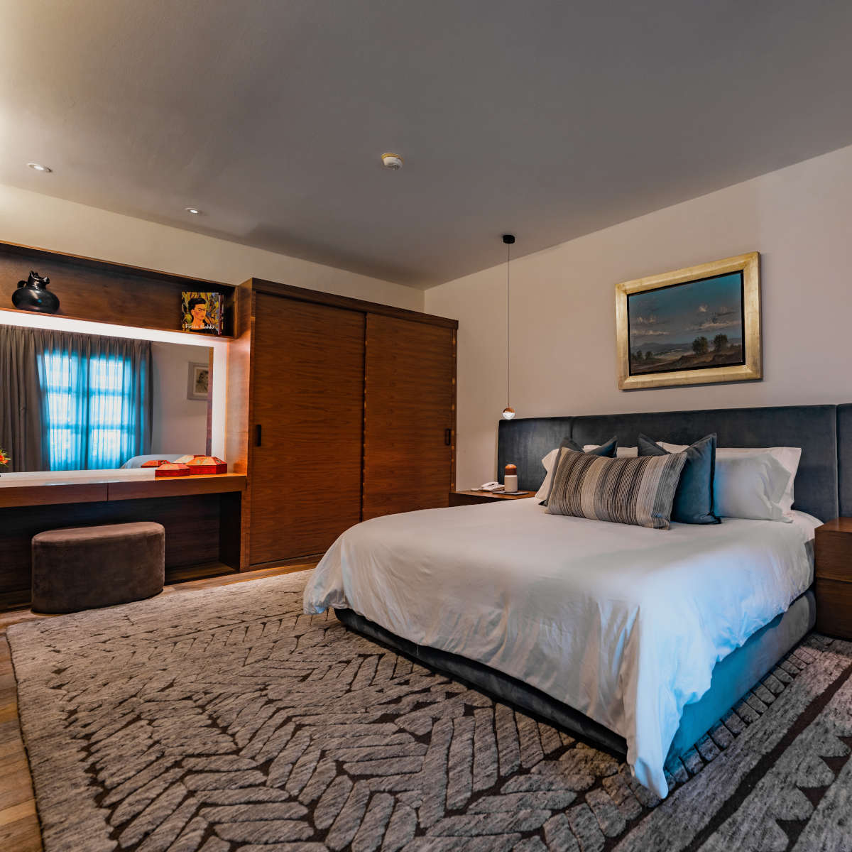 Las suites de Antiguo Molino de San Jerónimo son verdaderos refugios de lujo y confort, cada una de ellas ha sido diseñada con esmero para ofrecer una experiencia única, con detalles como muebles antiguos, textiles de lujo y vistas impresionantes del Centro Histórico de la Ciudad de México. Los huéspedes pueden disfrutar de una variedad de servicios personalizados, desde un desayuno gourmet hasta un servicio de spa.